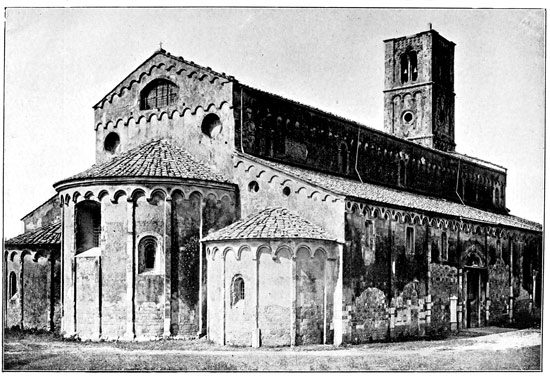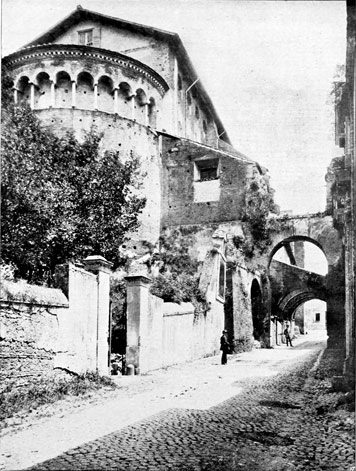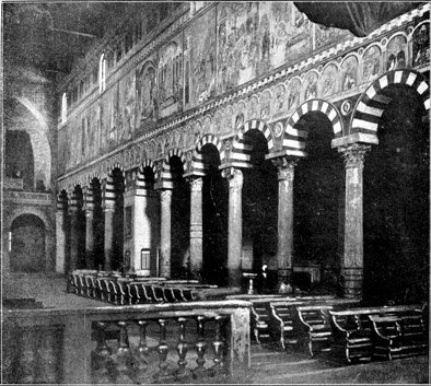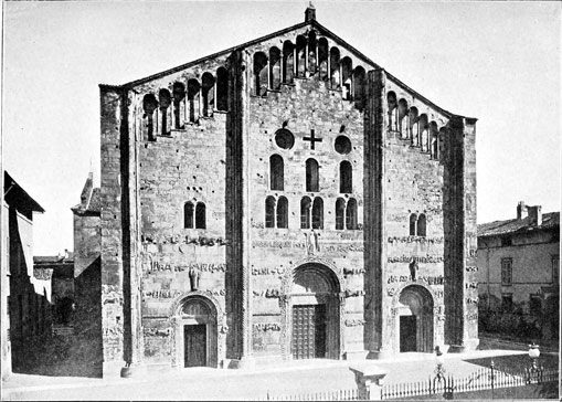 We shall see that all that was architecturally good in Italy during the dark centuries between 500 and 1200 A.D. was due to the Comacine Masters, or to their influence. To them can be traced the building of those fine Lombard Basilicas of S. Ambrogio at Milan, Theodolinda's church at Monza, S. Fedele at Como, San Michele at Pavia, and San Vitale at Ravenna; as well as the florid cathedrals of Pisa, Lucca, Milan, Arezzo, Brescia, etc. Their hand was in the grand Basilicas of S. Agnese, S. Lorenzo, S. Clemente, and others in Rome, and in the wondrous cloisters and aisles of Monreale and Palermo.