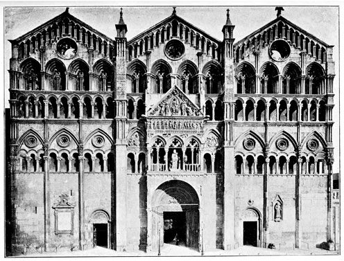 [276] Promiserunt et dederunt ad faciendum fabricandum et laborandum ... totam fazatam dicte Ecclesie ac portam, cum fenestris et aliis laboreriis necessariis pro ipsa fazata ... juxta modum et designationem ipsis fratribus dandum et dandem per dictum Monasterium.—Merzario, I Maestri Comacini, Vol. I. chap. xvii. p. 508, note 51.