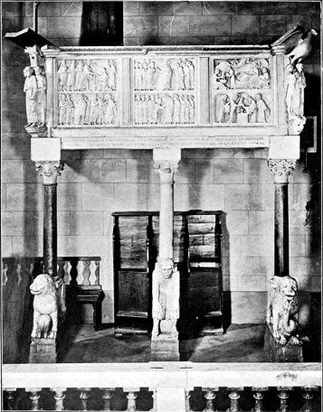 [302] "Superstans marmorariis laborantibus, lapides marmoreas pro ecclesia et palatio Sancti Marci presidens fabrice palatii apostolici."—Muntz, Les Arts à la Cour des Papes, vol. i. p. 606. It is interesting to note that the head of the laborerium bore the same title as in A.D. 1250, when Guido da Como wrote on his pulpit, "Superstans Turrisianus."