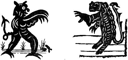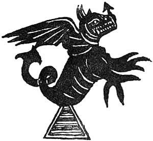 This was coincident with a belief in his personality; and it is only in modern times that that personality takes an alluring form. In the olden days the Devil was always depicted as ugly and repulsive as the artist could represent him, and yet he could have learned a great deal from the modern Chinese and Japanese. The ‘great God Pan,’ although he was dead, was resuscitated in order to furnish a type for ‘the Prince of Darkness’; and, accordingly, he was portrayed with horns, tail and cloven feet, making him an animal, according to a mot attributed to Cuvier, ‘graminivorous, and decidedly ruminant’; while, to complete his classical ensemble, he was invested with the forked sceptre of Pluto, only supplemented with another tine.