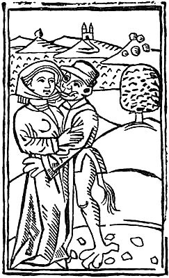 The Devil seems, with the exception of his entering into persons, not to have used his power of appearing corporeally until people became too holy for him to put up with, and many are the records in the Lives of the Saints of his appearance to these detestably good people—St. Anthony, to wit. Of course he always came off baffled and beaten, and, in the case of St. Dunstan, suffered acute bodily pain, his nose being pinched by the goldsmith-saint’s red-hot tongs. Yet even that did not deter him from again becoming visible, until, in the sixteenth and seventeenth centuries of our era, he became absolutely familiar on this earth.