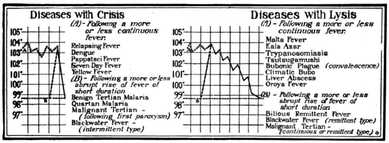 The chief feature of the book is in presenting in Part II the clinical side of tropical diseases from a standpoint of the signs and symptoms of these diseases which are connected with anatomical or clinical groupings rather than from the side of the individual disease. Thus in Chapter XLIV the diagnostic points which may be obtained from a study of the temperature chart are given while in Chapter LII the neurological manifestations, which may be noted in various tropical diseases, are presented.