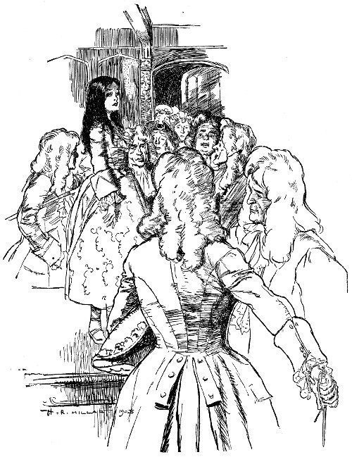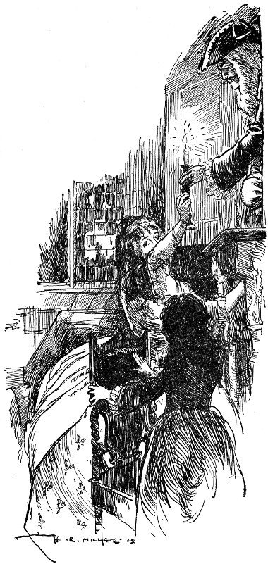 “HE TOOK OFF HIS HAT AT THE LAST WORDS AND SWEPT IT, WITH A FLOURISH, NEARLY TO THE GROUND.” (See page 217.)