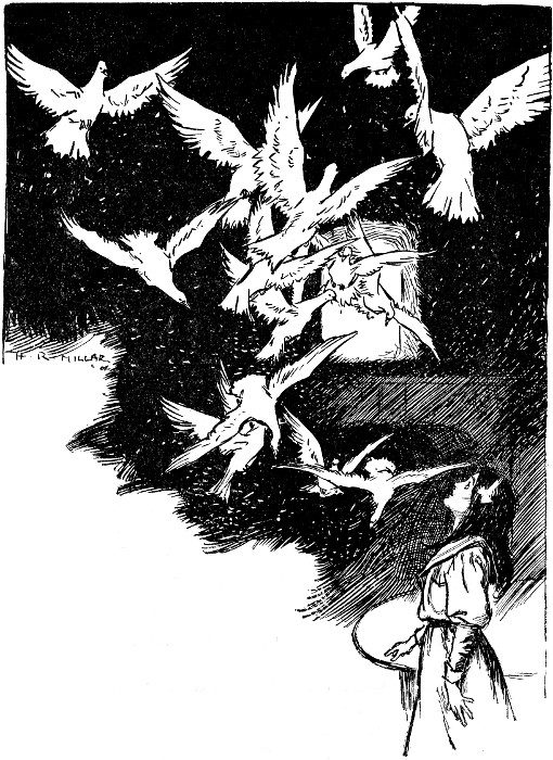 So Richard and his three white animals went out down steps cut in the solid rock, and the townspeople crowded round them with fruits and maize-cakes for Richard, and milk in golden platters for the cats.