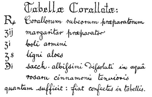 | ℞ | Corallorum rubeorum præparatorum |