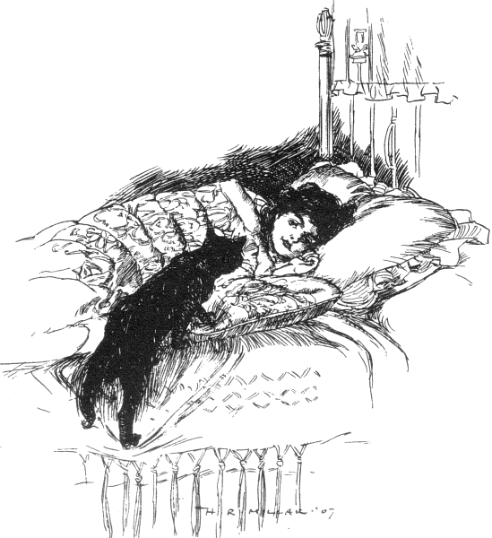 Maurice went to his room and thought it over. And the more he thought the more he hated Lord Hugh. Why couldn’t the beastly cat have held his tongue and sat still? That, at the time would have been a disappointment, but now Maurice wished it had happened. He sat on the edge of his bed and savagely kicked the edge of the green Kidderminster carpet, and hated the cat.