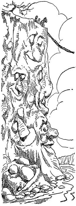 Gran’pa, with but the handle of his cane in his hand, jumped forward to strike again, but he missed his footing and went rolling down the stone steps.