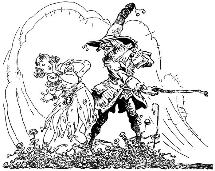 With one scream of pain, the Magician lay still, and as Johnny raised the crooked stick to bring it down upon Jingles’ head, Gran’ma stopped him.