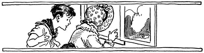 “Now, Mister! You be careful or we’ll never get back!” Janey cried as she clutched her brother tightly by the collar. “Send the Flying Machine down to the ground again, Johnny. Please do!”