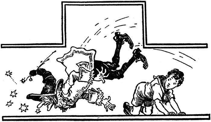 Down the long flight of steps the Magician fell, his long arms and legs hitting the steps and his crooked stick flying high in the air as he turned over and over.