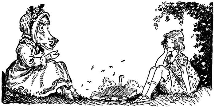 “Let me see! We were having a great ball or something at the Castle and I had just stepped outside the door to look at the Sun when—when—well, that is the last thing I can recall, except the queer dreams about rhymes and jingles.”
