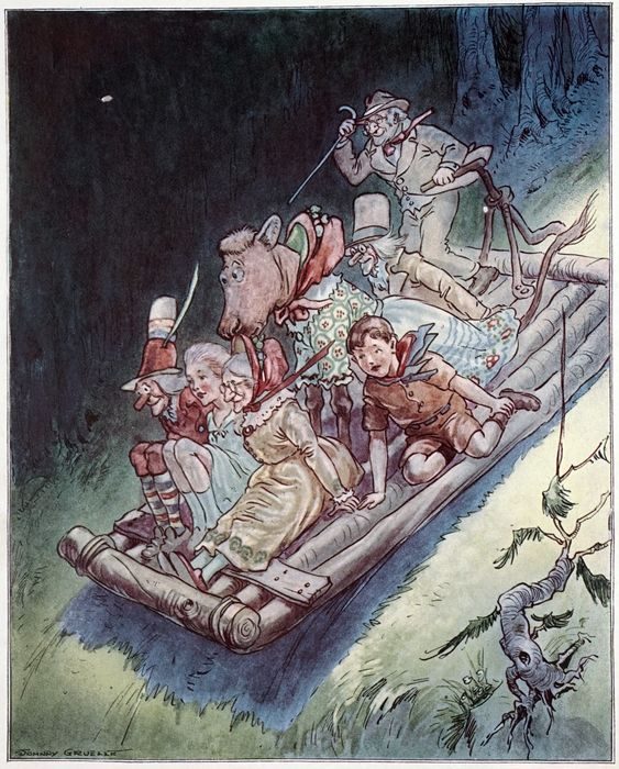 The King wished them to stay until he had learned how he came to change characters, but as soon as they had finished dinner, Gran’ma said they must leave.