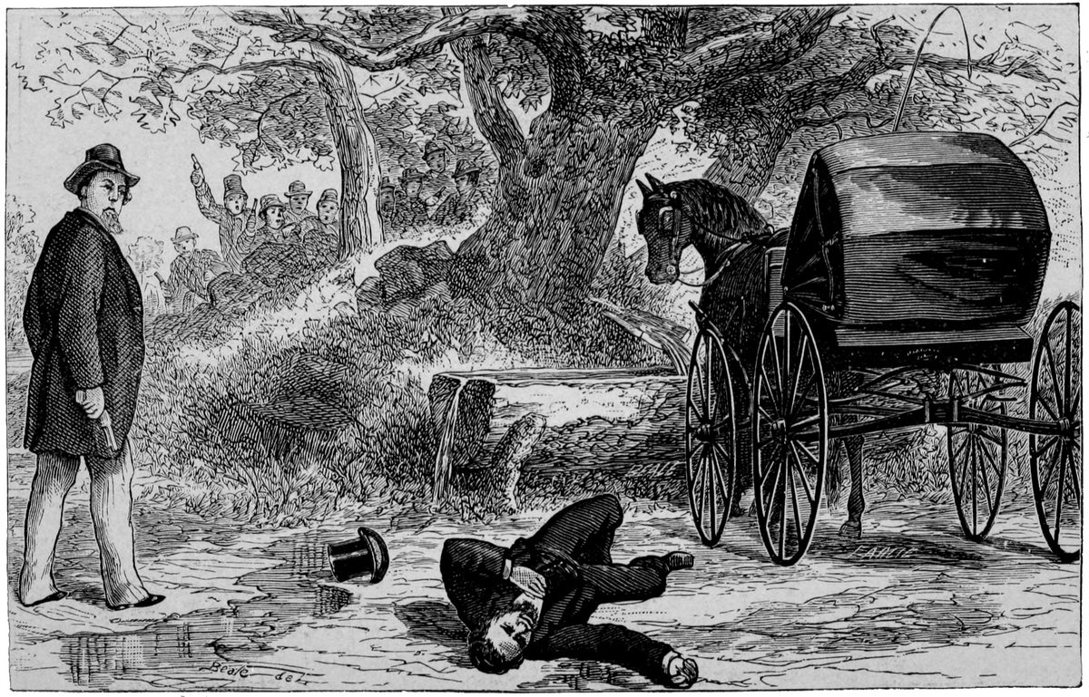He met Pat Hester, Peter McHugh and Ned Skivington at Big Mine Run, in Barney Dolan’s place, on the sixteenth of October, 1868, the day preceding that of the murder. Hester was on his way, he said, down the mountain with Skivington, but had missed the train and returned to Dolan’s, where all had something to drink. Afterward they walked to Ashland, and entered Donahue’s saloon. There Hester informed the witness that he had lost something by not going down the mountain that day, adding, “But there is a good thing to be had to-morrow, for Rae will go to Bell’s Tunnel, and there is money in it for us!” It was then agreed that Hester, McHugh, Tully, Skivington, Brian Campbell, Jim Bradley, Billy Muldowney and Dan Kelly should go and rob Rae. Roger Lafferty, alias Johnstone, went across the street and procured some powder and bullets, returned and loaded the pistols, each one of the persons named having a weapon. After this they had more liquor and stayed there all night. All but Lafferty went out in the morning to meet and rob Rae. But when they got as far as Germantown, Muldowney left, saying that he was too lame to keep on. After they got above the toll-gate, Hester and Skivington left, and Hester handed witness, Kelly, his pistol, saying: “Kelly, your pistol is no good! Take mine! for I know it’s sure!” And he remarked that he would go to Shamokin, to purchase hair to mix with lime to make mortar for plastering. Skivington was off also, wanting to go to work in the mine to throw aside suspicion from the rest. All the others went as far as the water-barrel, and remained there. They then begun talking about Rae and his son, and finally concluded that, if the lad should chance to be riding with his father that 547morning, as he often did, they would send the boy home with the horse, if they had to shoot Rae. The object was plunder, not murder, unless the latter was necessary to secure the money. Bradley, who was not known in Centralia, went and procured a quart of whisky and some crackers. When he got back all hands drank and ate. Five of the number present did not know Rae if they saw him, so Dalton, who was acquainted with him, walked out on the road to signal the others should their victim arrive. Soon a man came along in a wagon, but as Dalton did not shake his hat the person was allowed to pass. Still another man moved up while the assassins waited in ambush, driving a horse attached to a light wagon, and he was permitted to go his way unharmed, as Dalton again failed to give the notice. He presently stepped out into the road to see who was coming and returned to his former position. Quickly afterward a buggy hove in view and the assassins saw that Dalton was standing in plain sight, shaking his hat, and they knew that the driver was Alex. Rae. When the vehicle reached the watering-trough, all jumped out upon their victim. Rae alighted from the buggy when the men ordered him to, and quickly handed his watch and pocket-book to Kelly, the witness, but said nothing. He was confronted by a squad of heavily armed ruffians. What was there for him to say? Kelly asked McHugh what should be done with the man? McHugh replied: “I won’t be hunted around the world by any living man,” when the shooting began. Rae ran toward the woods, and Tully went up to him, put his pistol to his head, and shot him near the ear. Seeing that the man was sure to die, all ran up the mountain, where they divided the money, about sixty dollars, and the witness remembered that Dalton received a ten dollar bill with a corner torn off. Tully and McHugh and Kelly got in at Graham’s some time that day, and in the afternoon witness drove to Locust Gap with a beer-seller. He got home at half-past three. They killed Rae at about nine o’clock. 548He struck the ground upon his face, and they left him where he fell, after putting the horse and buggy out of sight in the wood. Kelly acknowledged that he fired two shots, but could not say how many the others fired. Dalton did not shoot at all. All of the rest discharged their weapons at the man. He was sure he saw Tully fire. One shot hit Rae in the cheek. He left Hester’s pistol at Graham’s and had given his own to Bradley. Hester’s weapon was a sort of navy pistol and held five cartridges. It was loaded at Donahue’s house. Dalton had a small pistol and McHugh’s was not as large as Kelly’s. McHugh had a seven-shooter. Hester met him the same night in Graham’s, at about nine o’clock, when the rest were there. The next he saw of Hester was three days later, when he rode in his wagon with him from the Gap to Ashland. Hester received none of the money taken from Rae. It was Hester’s idea that Ray would have eighteen or nineteen thousand dollars with him, but when he heard how small a sum had been realized he said it was not worth dividing, so took none of it. About the seventeenth of November, after Donahue and Duffy had been arrested, Jack Smith told Hester of the capture, and he remarked it was about time for him to go, and he did go, without telling his confederates where he went. They all separated, remained away a month or two, and returned. When they got back Hester was in jail. He said he had been to Illinois, but it would look better to go back, as he might be taken there. A woman got Rae’s pocket-book. The watch—a gold one—witness gave to Mike Graham, to keep for him. He took it from him afterward and left it with Con Garrah for ten dollars. Garrah restored it, when Kelly gave it to McGuire for ten dollars and turned the money over to Garrah. The watch was subsequently broken up with rocks and thrown into a creek, for fear it might lead to trouble.