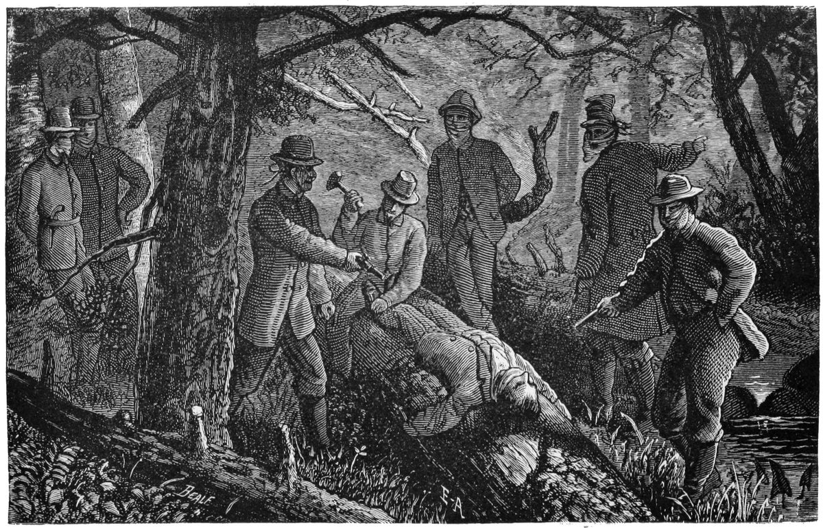 It was the ninth of February, 1877, that the trial at Bloomsburg approached a crisis. Sitting in the prisoner’s 546dock, Pat Hester smiled when he saw Dan Kelly, alias Manus Kull, alias “Kelly the Bum,” in the witness-box. But his humor changed to dire dismay as he discovered that there were still other witnesses, who fully corroborated what Kelly made oath to. Dan Kelly’s story of the Rae assassination was about as follows: