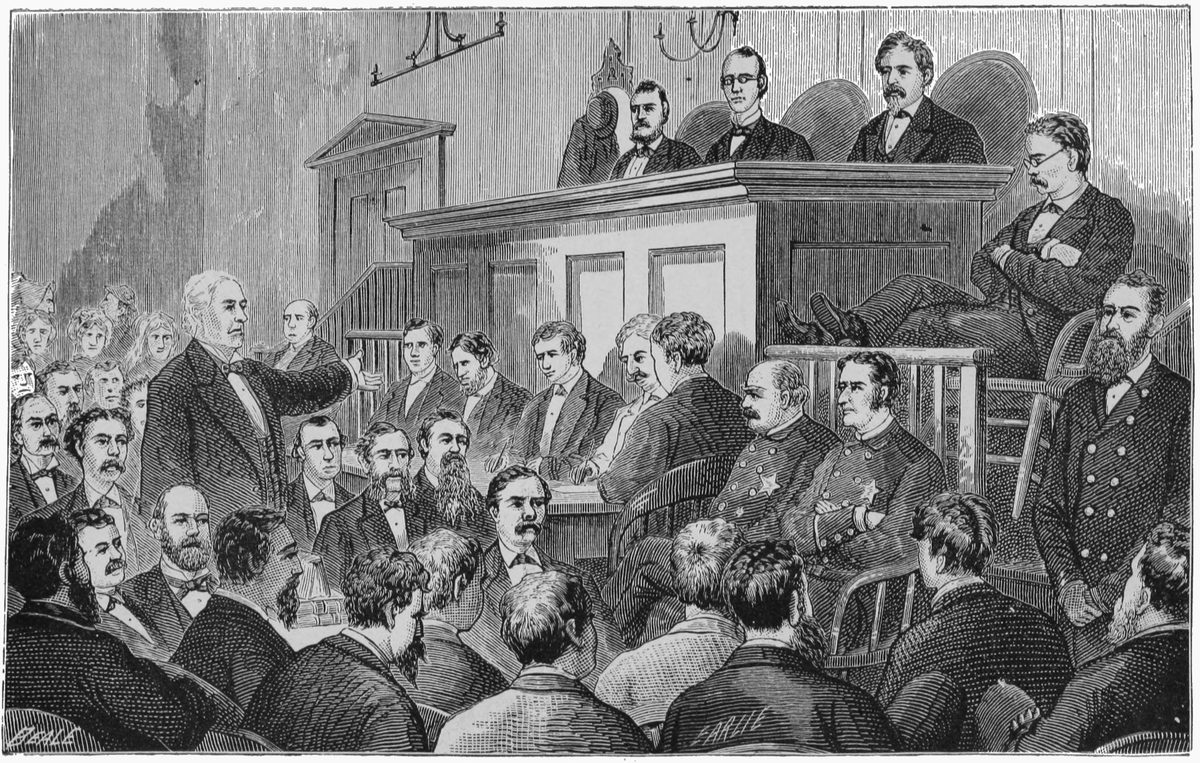 “I have done all that I could to expose the criminal character of this organization. Laying aside all other duties, giving up everything else that I had to do, I have tried to devote myself to this cause, for I believe it to be the highest duty that I could be called upon to perform. I am glad, at the conclusion of this case, to return my thanks to the able gentlemen who have been associated with me, and especially to the District Attorney, under whose administration these crimes have come to light. He was an old student of mine when I was in this county, and I was glad to know that it was he who filled the office when this conspiracy was first brought to light. He has done his duty faithfully and nobly, in the face of danger, without fear, or favor, or affection. I know that we have a Court that will not shrink from whatever duty may be imposed upon it, and I believe, from what I have seen of you, that you will walk unshrinkingly in the plain paths of duty that are opened before you. Do this, gentlemen, and I am sure that, linked together with that of McParlan and of others who have aided in this glorious crusade, 541your names will be enshrined for long coming years in the grateful recollections of an enfranchised and redeemed people.”