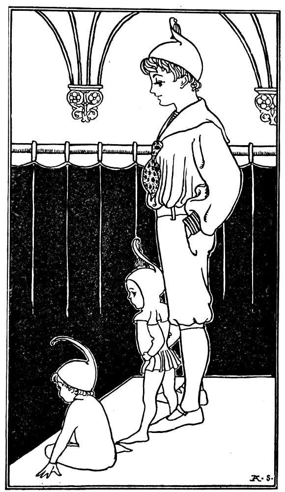 “There is my old master, the Lord of the Safety-Pin,” said the elf to Harry, as a surly-looking[Pg 9] elf entered, whose clothes were fastened with numerous safety-pins. “See him scowl at us; he knows you are my master now. Those elves behind him are his knights. Each knight has two esquires and twelve retainers; any retainer who finds a good safety-pin becomes an esquire, and if he finds another he is made a knight; but he can’t become a lord until he has found enough to pin all his clothes together. There is only one lord of that order, because you mortals don’t lose many good safety-pins, and a broken one doesn’t count.