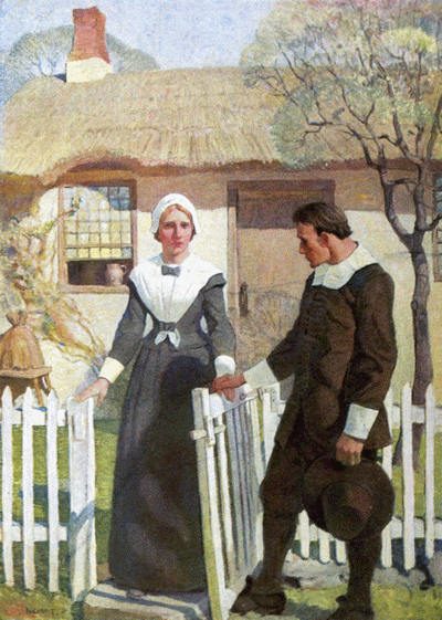 There could not have been a fairer autumn day. And now as they rode the country grew more and more familiar.... While the day was yet young, all were halted for a few minutes before a tavern set among trees, its sign a great rose painted on a black ground. While ale in jacks and tankards was brought forth for the guardians of the law, the two prisoners had brief speech together.