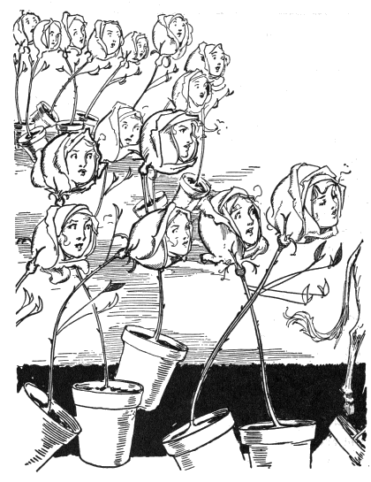 “I’ll go,” said Jo Cone, and Ann went on to the cottage of Jo Clock, who had an orchard of clock-trees. This man at first insisted that he would not join the army, but Queen Ann’s promise to make him a General finally won his consent.