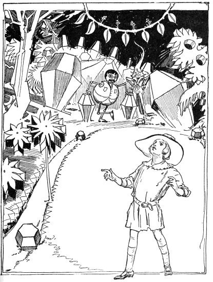 “Excuse me, please,” said Jo Cone. “I am a bad fighter. My good wife conquered me years ago, for she can fight better than I. Take her, Your Majesty, instead of me, and I’ll bless you for the favor.”