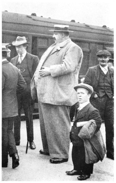 I remember once the Manchester bookmaker, George Gunnup, coming to London to look after the box office for the late Dick Burge at The Ring, Blackfriars. He always used to rave about London cured fish, and told me one day in great confidence that he had found a shop down the New Cut where a pal of his smoked haddocks in real oak sawdust. They were marvellous, he said, and he promised me a bag of his pal’s fish to try. At this time he and his wife were staying with Marie Lloyd on her house-boat at Thames Ditton. One day he ’phoned up to my house at New Malden. I was away working four shows a night at the time at Poplar and Ilford. My wife’s299 mother—a dear old lady over eighty years of age—answered the telephone. He said he had a lovely bag of fish for me, and would she mind being on the platform at Malden station at twelve o’clock at night when he passed through in the train on his way to Thames Ditton? She of course was there—though she generally goes to bed at seven o’clock—waiting for the lovely bag of wonderful smoked haddocks. As the electric train drew in George Gunnup handed her the bag of fish with his compliments. Dick Burge, Sam Mayo, and a lot of the lads were in the same compartment. When she got home and opened the bag it contained a rabbit skin, a pair of old boots, and a couple of bananas. Of course George Gunnup did not know anything about it. He had bought the fish, and told them at The Ring that it was for Carlton. Dick Burge and Sam Mayo, I believe, rang the changes on me, but I, of course, was not there, so the joke fell flat. The old lady took it in good part, but George Gunnup never forgave Sam Mayo and Dick Burge.