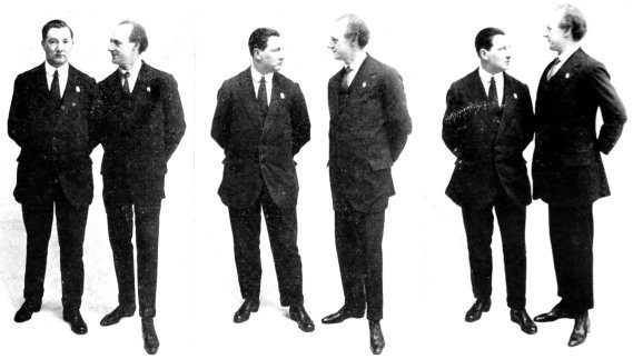 The majority of performers in this country live in “digs” or apartments. In America it is just the opposite, all travelling performers live in hotels. On the occasion of my last voyage back from the States there were a lot of American “pro.’s” coming over who were very anxious to know the ropes here. They were looking forward to cosy “digs,” with a comfortable sitting-room and a nice fire, instead of the artificial steam heat, so they asked me to tell them of some good rooms in London. I told them I knew some tip-top ones. They thanked me, and I wrote down the address in their book, “10, Downing Street.” When they arrived at Euston Station they got all their “props” on to a taxi and immediately went to the address I had given them. I have kept out of their way since, so exactly what happened I do not know, but I heard that they duly drove up and asked for apartments. I wonder whether Lloyd George was at home?